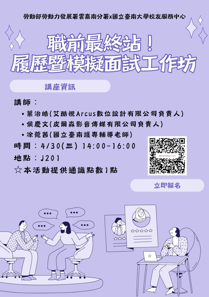 名稱:職前最終站!履歷暨模擬面試工作坊