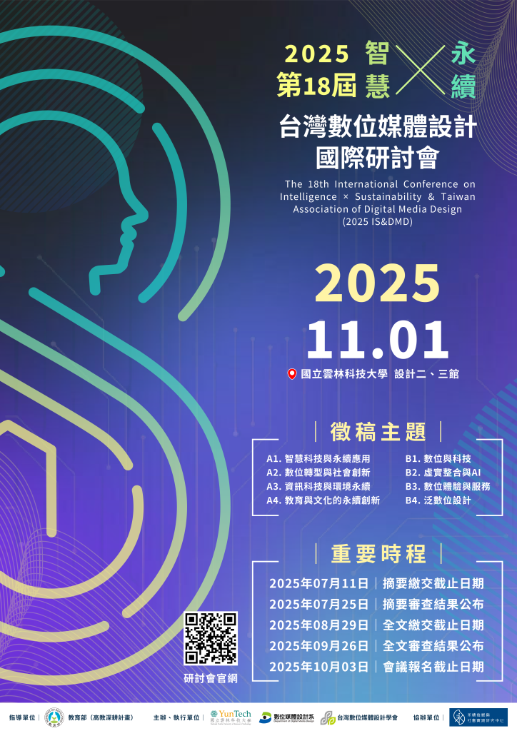 一、旨揭研討會為回應當代社會面對科技迅速演進與永續發展挑戰的雙重議題,促進學術、教育與產業界跨領域對話與合作。本研討會期望透過「智慧 × 永續」的核心主題,探索數位媒體設計如何成為永續未來的驅動力,並提供與會者一個交流、啟發與實踐的國際平台,共同描繪科技與數位媒體設計融合的新願景。