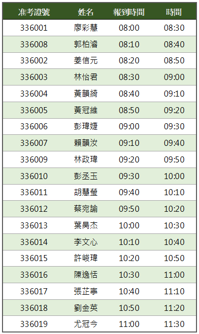 113學年度碩士班推甄面試時間表 (11/5) 2023-11-012023-11-01 面試日期:112年11月5日 星期日 報到時間:請於面試前30分鐘報到 報到地點:國立臺南大學府城校區思誠樓 F104 系辦公室 攜帶文件:請攜帶可證明個人身分之證件,如身分證或健保卡等。